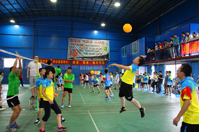 隨著主裁的一聲哨響,氣排球比賽正式開始。本次氣排球比賽以淘汰賽形式進行,第一輪由“集團領導” 對陣“嘉通無敵隊”、“盛景榮隊”對陣“開心聯(lián)隊”、“克懼隊”對陣“萬方物業(yè)隊”、“勇港隊”對陣 “盛青隊”,兩方的隊員便開始了龍爭虎斗、各施絕技。各隊的參賽隊員都以昂揚的斗志迎接比賽,發(fā)球、起跳、攔網、扣球……各隊比分在裁判員的一次次翻牌中發(fā)生變化。最后,“勇港隊”、“嘉通無敵隊”、“盛景榮隊”、“萬方物業(yè)隊”成為4強隊伍,進入半決賽。
