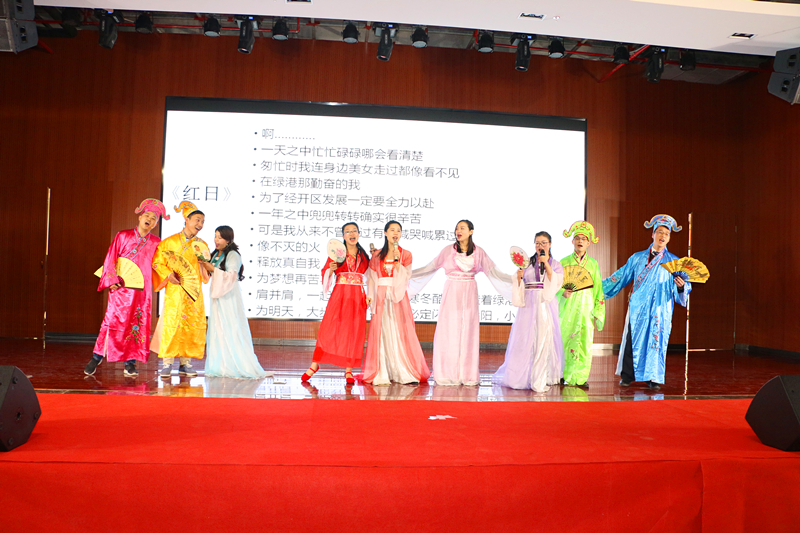 隨后,來自集團工程管理部林重胤以及嘉通公司潘青青甜蜜獻唱《告白氣球》,讓大家感受到了愛情的絲絲美好。嘉通公司的《夸夸咱公司》,用三句半的表演形式唱出了綠港集團濃濃的企業(yè)文化情愫,也展現(xiàn)了綠港員工積極、拼搏、向上的精神。《我要回綠港》、《聲臨其境》、《好運來》、《愛》、《好嗨喲》等多個節(jié)目在觀眾的熱情掌聲中聯(lián)袂奉上一場精彩演出,整個活動歌聲笑聲、熱烈的掌聲匯成了歡樂的海洋。集團營銷管理中心的《四小天王齊賀歲》以及集團計劃運營部、紀檢監(jiān)察審計部、安全監(jiān)督部聯(lián)合帶來的《蒙面唱將猜猜猜》將活動推向高潮,現(xiàn)場掌聲不斷??彀濉毒G港贊歌》道出了綠港集團成立五載,綠港人用智慧和汗水所取得的成效。最后,集團領導班子壓軸出場,帶來詩歌朗誦《相信未來》,贏得陣陣掌聲,讓大家堅定了信心、鼓足了干勁,對美好生活更加熱愛和向往。