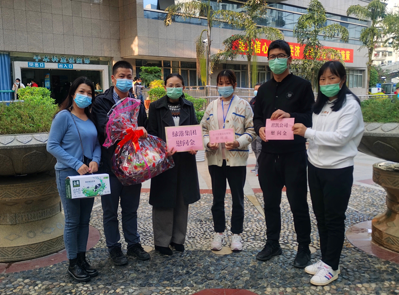 慰問組一行與貧困戶家屬進(jìn)行了親切的交流,向家屬詳細(xì)了解其病情現(xiàn)狀、治療恢復(fù)情況等,大家鼓勵(lì)盧天暖要堅(jiān)定信心,克服困難,積極配合治療,爭(zhēng)取早日康復(fù)出院。同時(shí)叮囑家屬:“不要被眼前的困難嚇倒,現(xiàn)在黨的扶貧及醫(yī)療政策這么好,你們一定不會(huì)被拖垮的,有什么困難及時(shí)給我們打電話,我們會(huì)盡力幫助你們的?!彪S后,慰問組為盧天暖送上水果、牛奶以及慰問金,送去綠港集團(tuán)黨委對(duì)他的關(guān)心和問候。