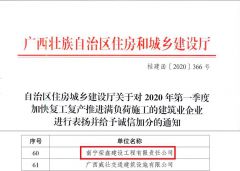 - 近日,廣西壯族自治區(qū)住房和城鄉(xiāng)建設(shè)廳發(fā)布《自治區(qū)住房城鄉(xiāng)建設(shè)廳關(guān)于對(duì)2020年第一季度加快復(fù)工復(fù)產(chǎn)推進(jìn)滿負(fù)荷施工的建筑業(yè)企業(yè)進(jìn)行表?yè)P(yáng)并給予誠(chéng)信加分的通知》,對(duì)2020年第一季度為自治區(qū)經(jīng)濟(jì)穩(wěn)增長(zhǎng)做出較多貢獻(xiàn)的建筑業(yè)企業(yè)進(jìn)行表?yè)P(yáng)并給予誠(chéng)信加分。綠港集團(tuán)下屬榮鑫公司獲得通報(bào)表?yè)P(yáng)和3分誠(chéng)信加分獎(jiǎng)勵(lì)。此次的通報(bào)表?yè)P(yáng),充分肯定了榮鑫公司疫情后復(fù)工復(fù)產(chǎn)取得的成效,也將進(jìn)一步提高榮鑫公司投標(biāo)工作及承攬業(yè)務(wù)的競(jìng)爭(zhēng)能力。